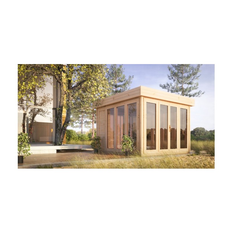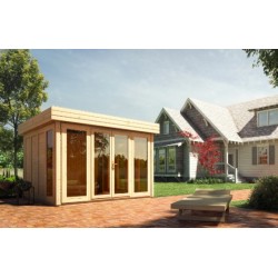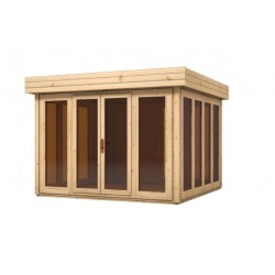 Altana ogrodowa Orchidea będzie idealnym miejscem, przystosowanym do celów rekreacyjnych w Twoim ogrodzie i nie tylko. Pokryta jest płaskim dachem – wykonanym, podobnie, jak cała altana z drewna świerkowego. Dach pokryty jest papą asfaltową. Altana jest przeszklona – posiada 11 okien, z brązowymi szybami typu antisol. Ponad to altana wyposażona jest w przeszklone dwuskrzydłowe drzwi. Model ten posiada dodatkowe opcje montażu okien – dwóch lub czterech otwieranych na uchył.